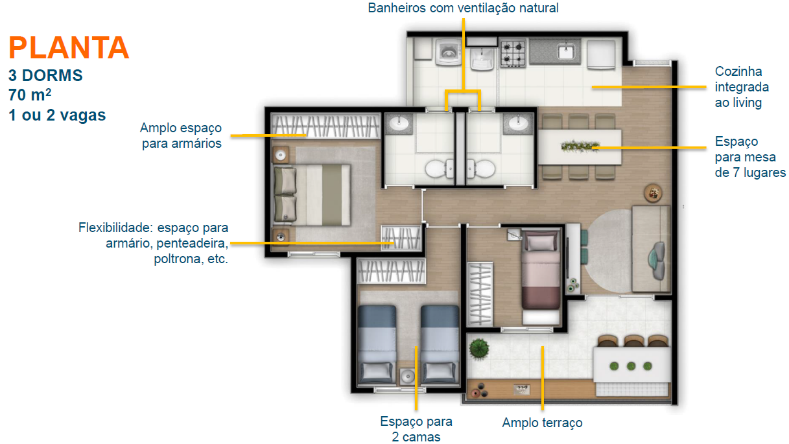 - Área Privativa: 70 m²