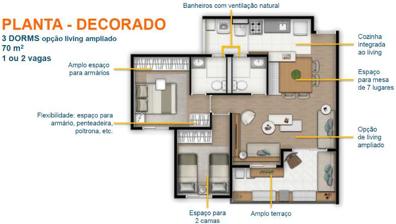 - E todos esses ambientes serão entregues decorados de acordo com as tendências mais atuais.