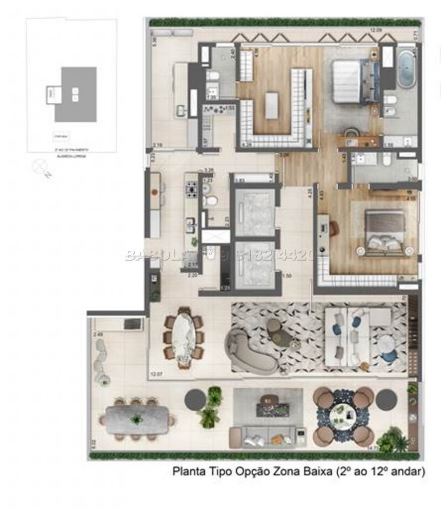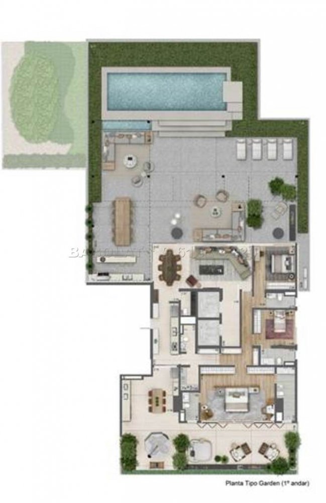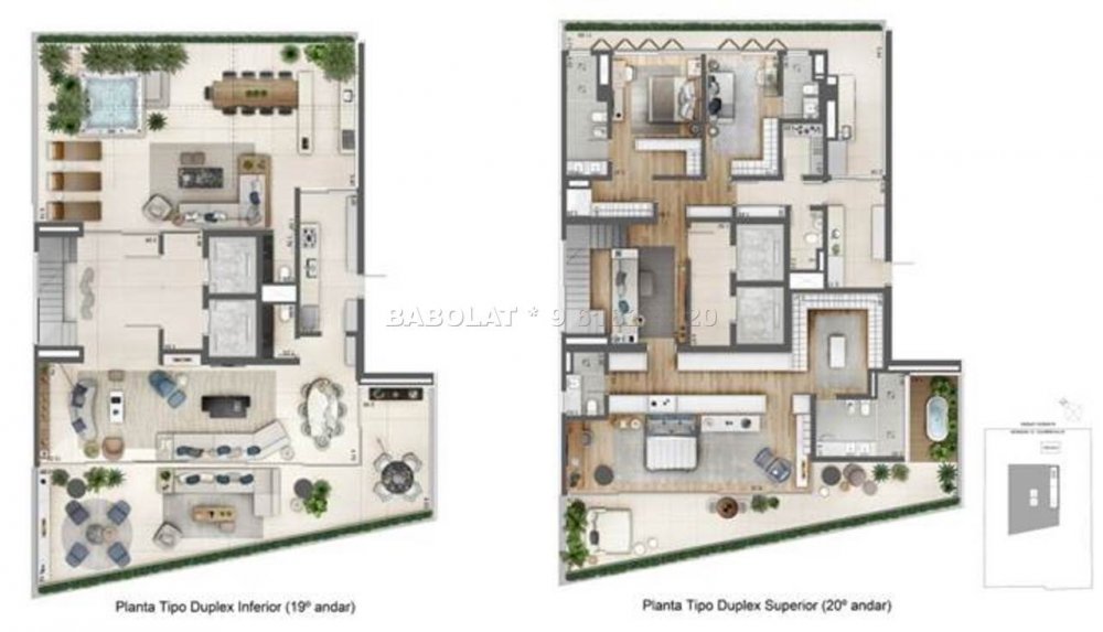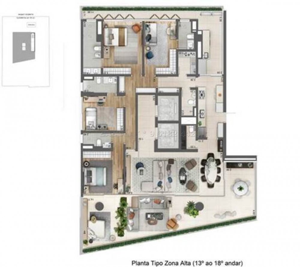 - Unidades tipo com 263 m² e cobertura duplex com 585 m², com 4 ou 6 vagas de garagem.