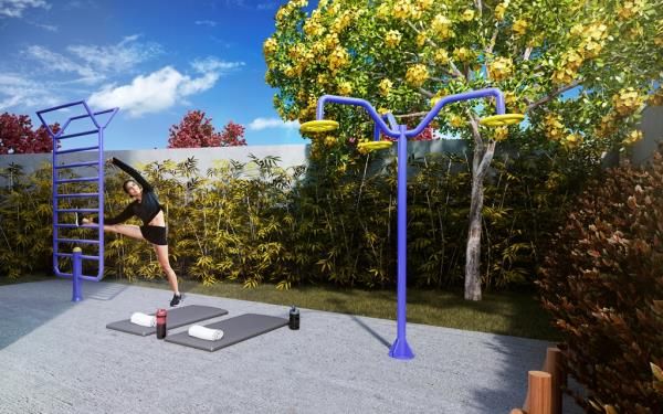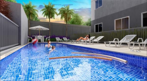 - Um condomínio fechado, com um lazer completo com piscina adulto e infantil, academia, salão de festas, playground, salão de jogos, fitness externo e brinquedoteca.