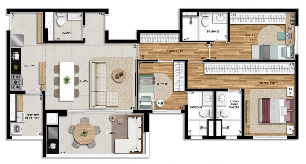 • Área Privativa: 105 m²