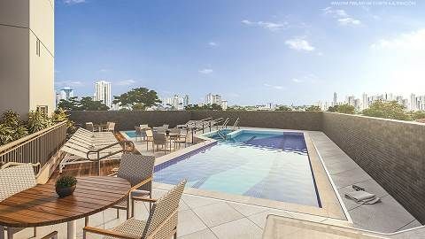 • Torre única com plantas de 105 e 106 m² (3 suítes) , terraço com churrasqueira a carvão, 2 vagas determinadas, depósito privativo para algumas unidades.