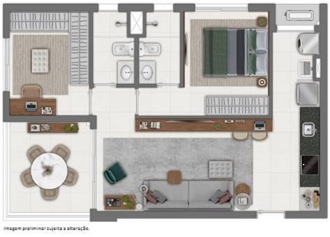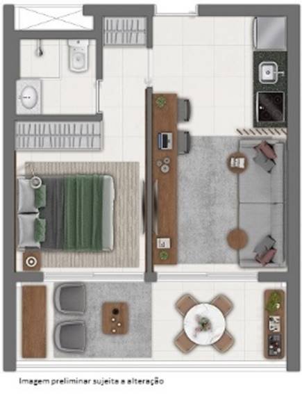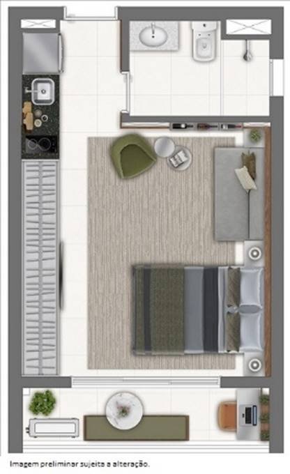 • Apresenta studios de 31 m², plantas de 1 dormitório com 40 m² e plantas de 2 dormitórios de 62 à 66 m².