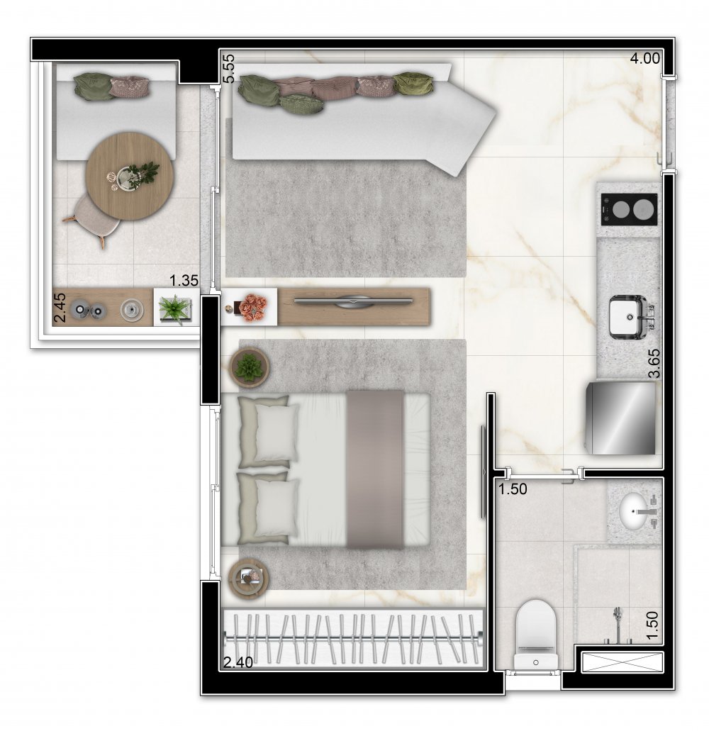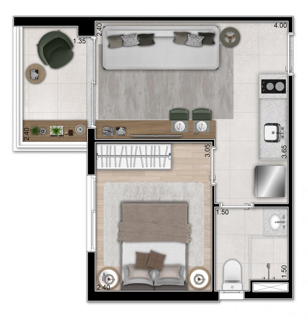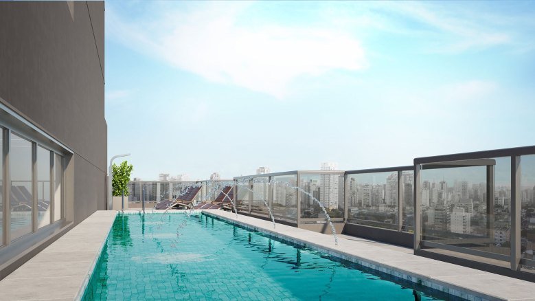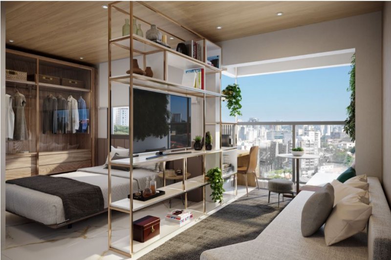 • Apresenta unidades studio de 20 m² e apartamentos de 1 dormitório com 28 à 31 m².