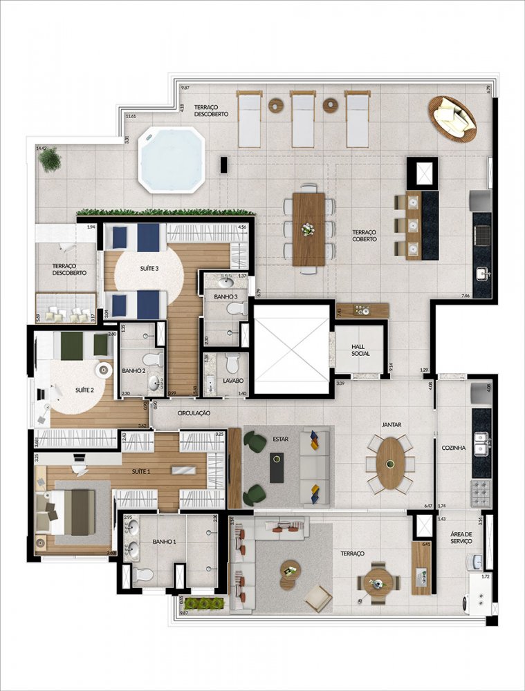 terraço com churrasqueira ainda possibilita um ambiente