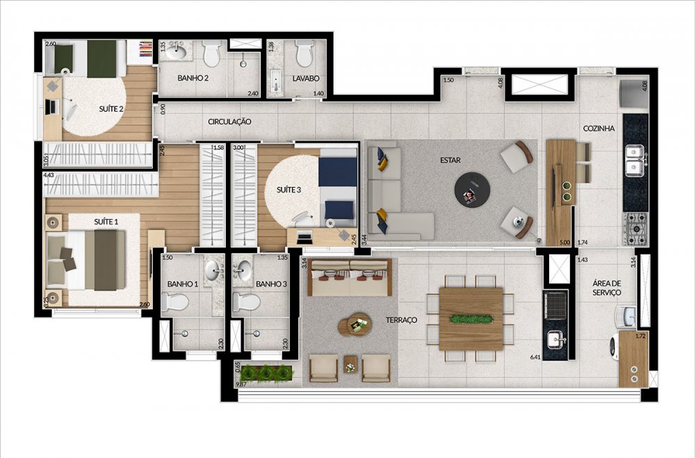 3 suítes de